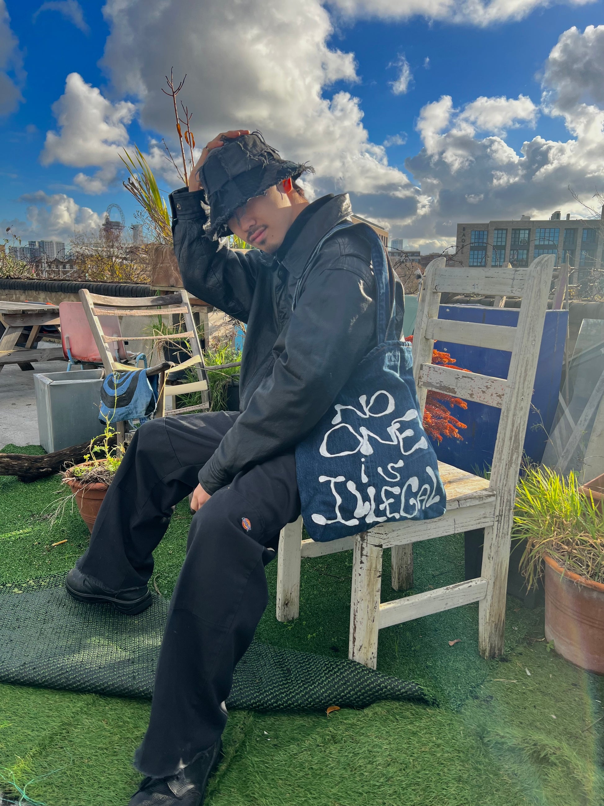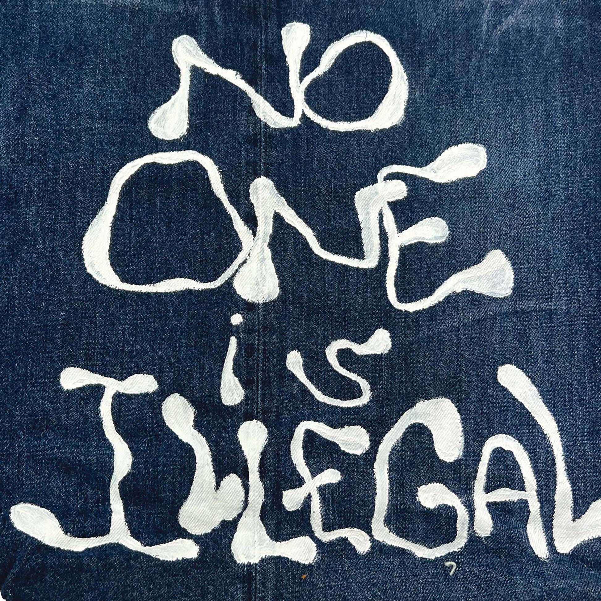Denim Record Tote w Ozwick - No One is Illegal -