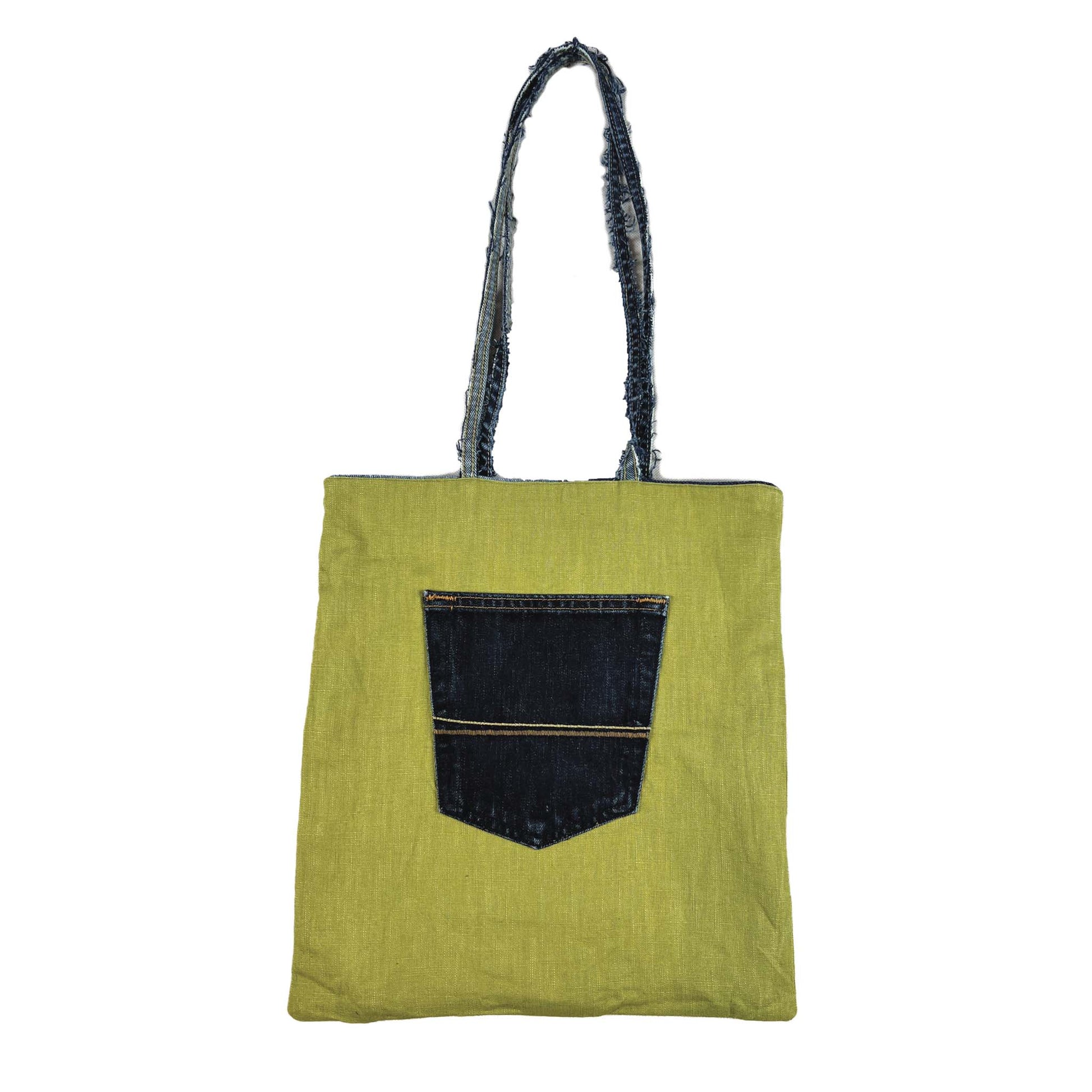 Handmade patch work denim tote bag.