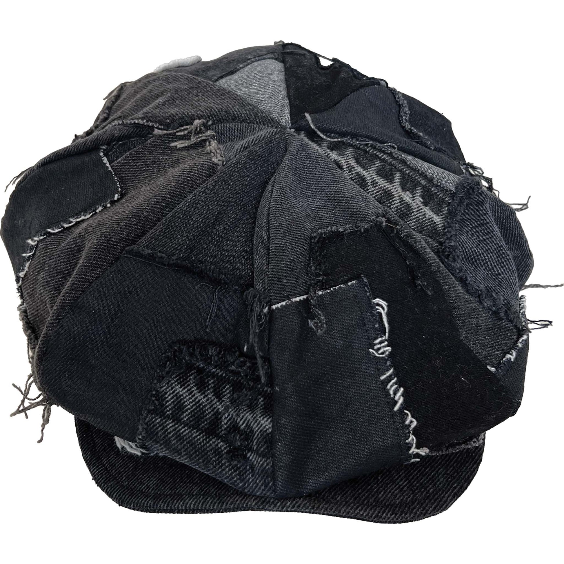 Patched Bakerboy Hat with mixed black/grey denim with linen lining